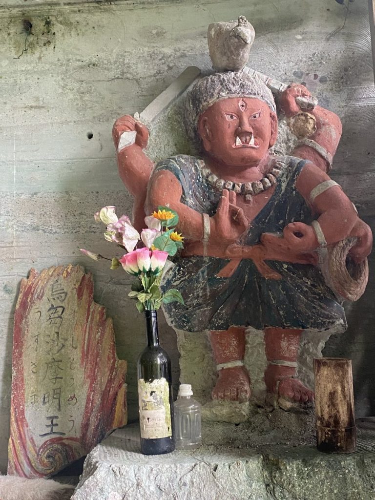 頭に孔雀冠りの希少な烏枢沙摩明王像。