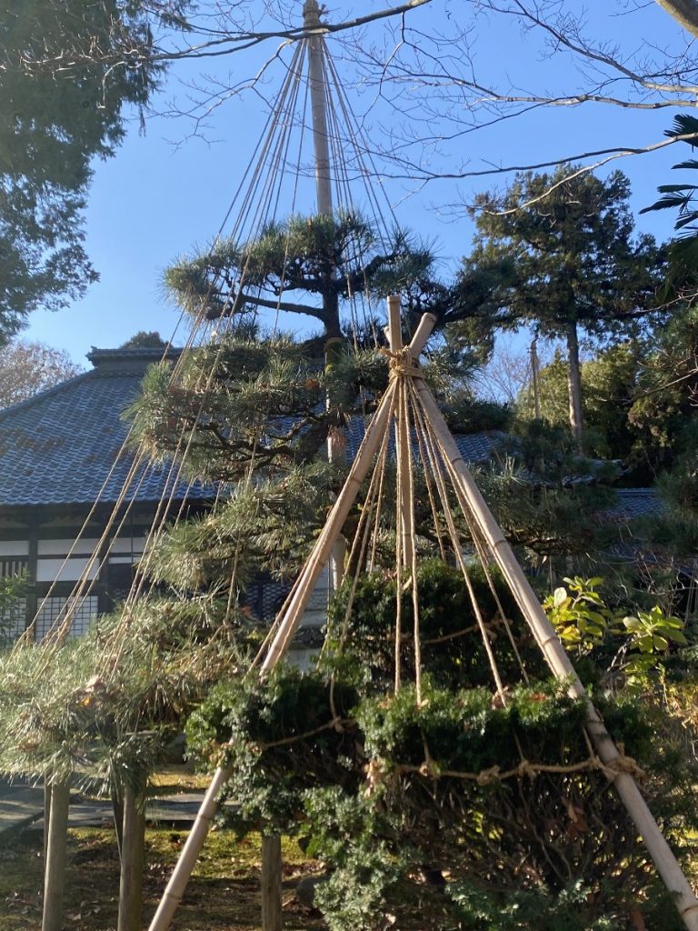 今年の降雪は?雪吊り万端。